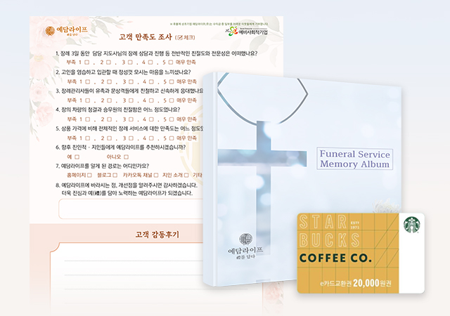 장례메모리앨범 혹은 스타벅스 모바일 상품권 증정