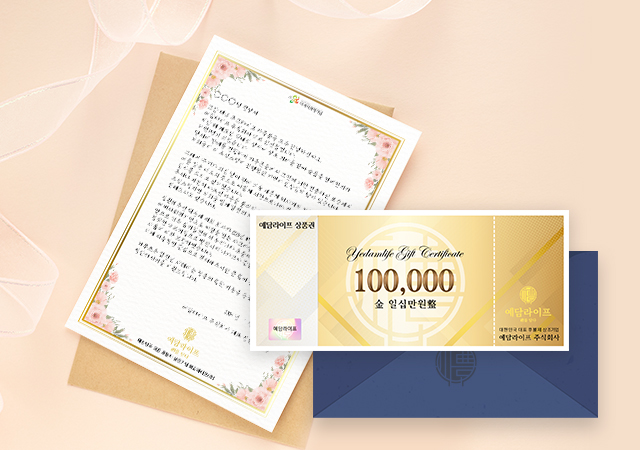 후불제 상조기업 예담라이프에서 장례를 진행해 주심에 감사드리며 장례 후 1주기를 맞아 예담라이프(주) 대표자의 서한과 예담라이프 상조 상품권(10만원)을 보내드립니다.