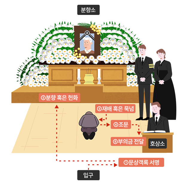 · 상주, 상제에게 악수를 청하는 행동을 삼가고, 인사는 목례로 대신합니다.